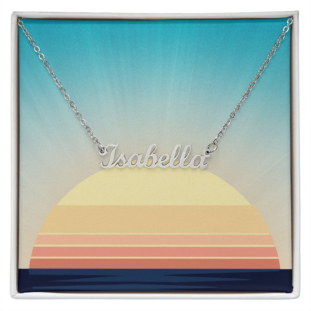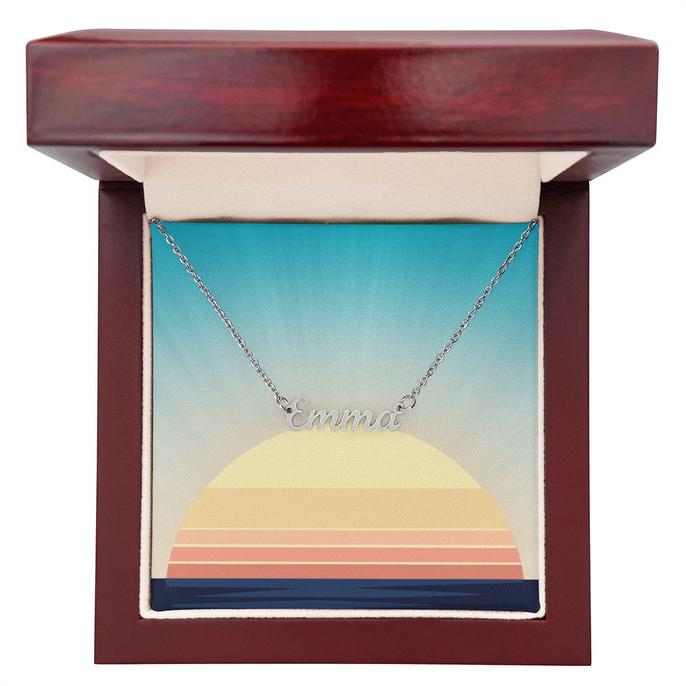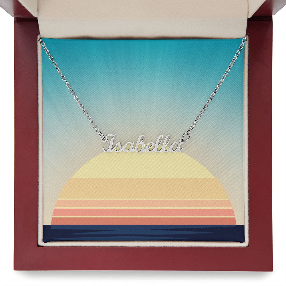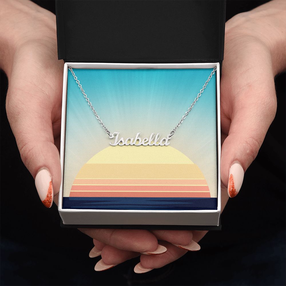This stylish necklace features a cursive name design suspended on an 16”-18” adjustable cable chain, making it both personal and beautiful! Your necklace will be custom made upon ordering in the name or word of your choice, with up to 10 characters. It's a gift that they will surely want to keep close to their heart forever!