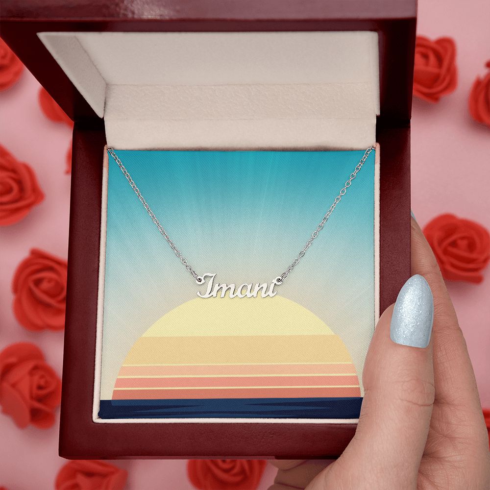 This stylish necklace features a cursive name design suspended on an 16”-18” adjustable cable chain, making it both personal and beautiful! Your necklace will be custom made upon ordering in the name or word of your choice, with up to 10 characters. It's a gift that they will surely want to keep close to their heart forever!