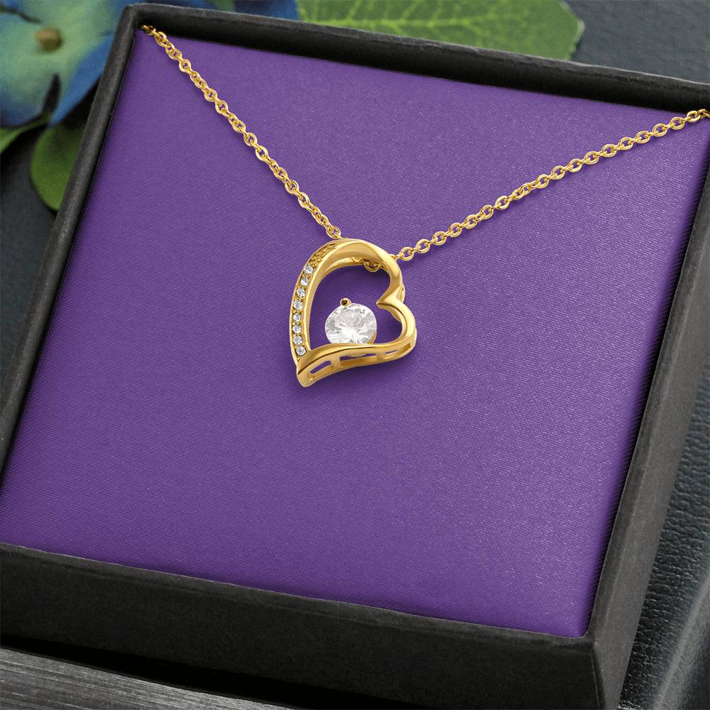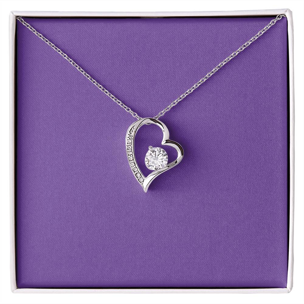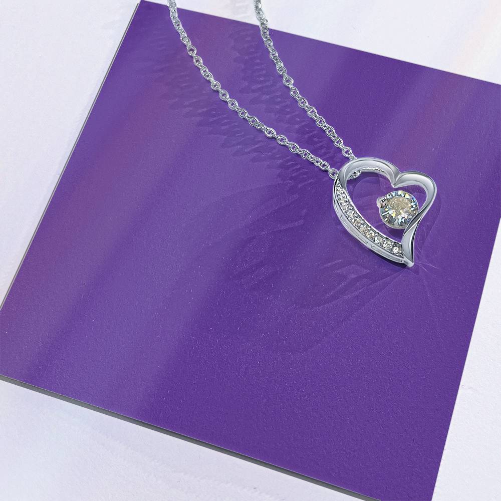 The dazzling Forever Love Necklace is sure to make her heart melt! This necklace features a stunning 6.5mm CZ crystal surrounded by a polished heart pendant embellished with smaller crystals to add extra sparkle and shine. Beautifully crafted with either a white gold or yellow gold finish, be sure to give her a classic gift she can enjoy everyday.