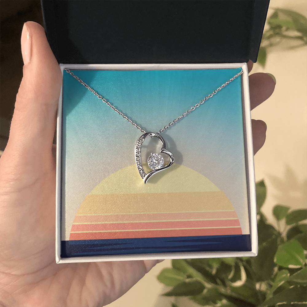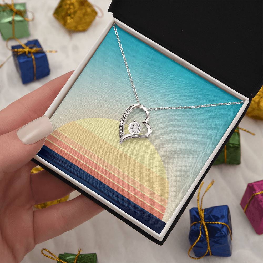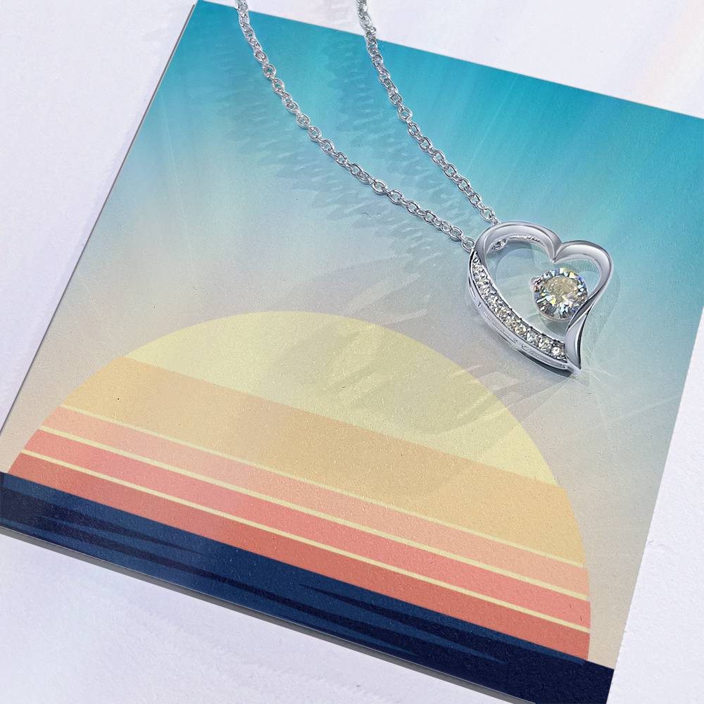 The dazzling Forever Love Necklace is sure to make her heart melt! This necklace features a stunning 6.5mm CZ crystal surrounded by a polished heart pendant embellished with smaller crystals to add extra sparkle and shine. Beautifully crafted with either a white gold or yellow gold finish, be sure to give her a classic gift she can enjoy everyday.