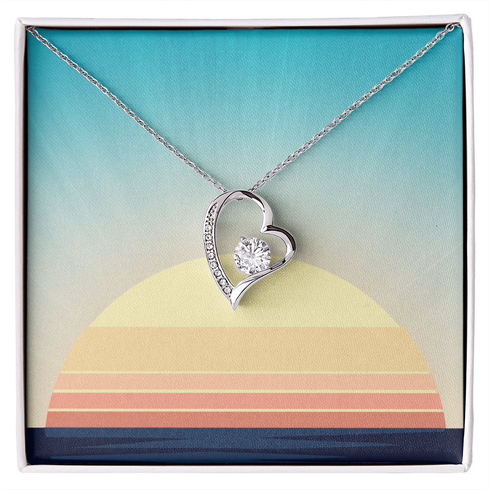 The dazzling Forever Love Necklace is sure to make her heart melt! This necklace features a stunning 6.5mm CZ crystal surrounded by a polished heart pendant embellished with smaller crystals to add extra sparkle and shine. Beautifully crafted with either a white gold or yellow gold finish, be sure to give her a classic gift she can enjoy everyday.