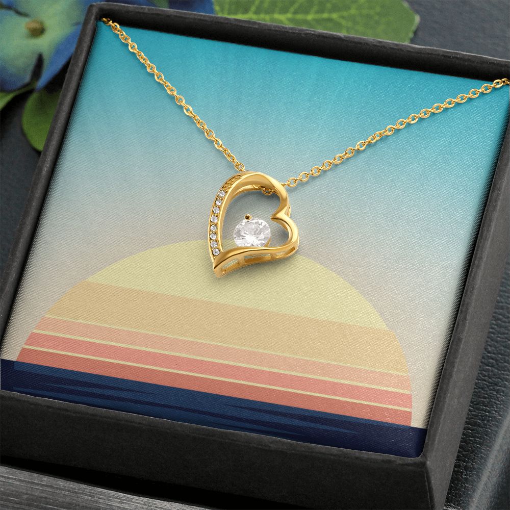 The dazzling Forever Love Necklace is sure to make her heart melt! This necklace features a stunning 6.5mm CZ crystal surrounded by a polished heart pendant embellished with smaller crystals to add extra sparkle and shine. Beautifully crafted with either a white gold or yellow gold finish, be sure to give her a classic gift she can enjoy everyday.
